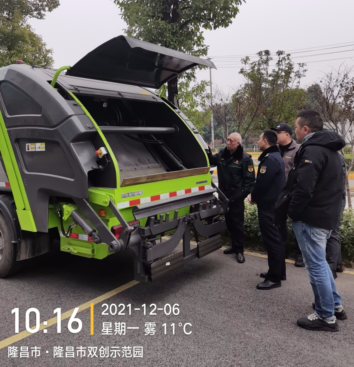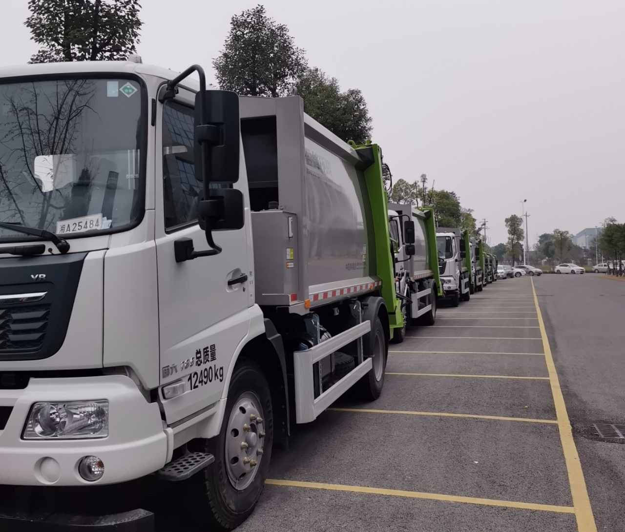 12月6日上午,3臺8噸、4臺12噸后壓縮式垃圾車陸續抵達交車指定地點。