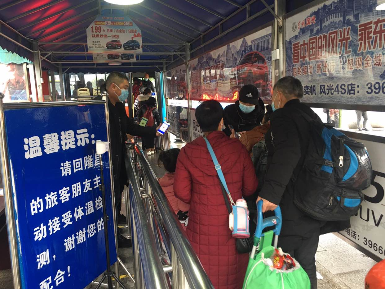 春運期間,人流量增大,人員復雜,為做好疫情防控工作,公司領導親自帶隊到界市公交車上客點根據當班客流量進行車輛安排調度,協助工作人員做好乘客體溫檢測、掃碼、亮碼等工作,并督促乘客正確佩戴好口罩,對于無智能機的老人和小孩進行乘客信息登記,有效防止疫情通過我公司車輛傳播。