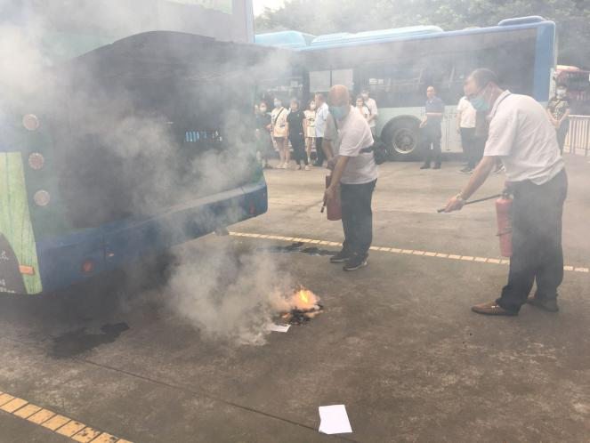情景二:一輛載滿乘客的公交車在隆界快速通道行駛過程中,因意外發生火災,并迅速蔓延,車廂內冒出滾滾濃煙,駕駛員通過疏散乘客、報警、撲救初期火災等一系列處置。