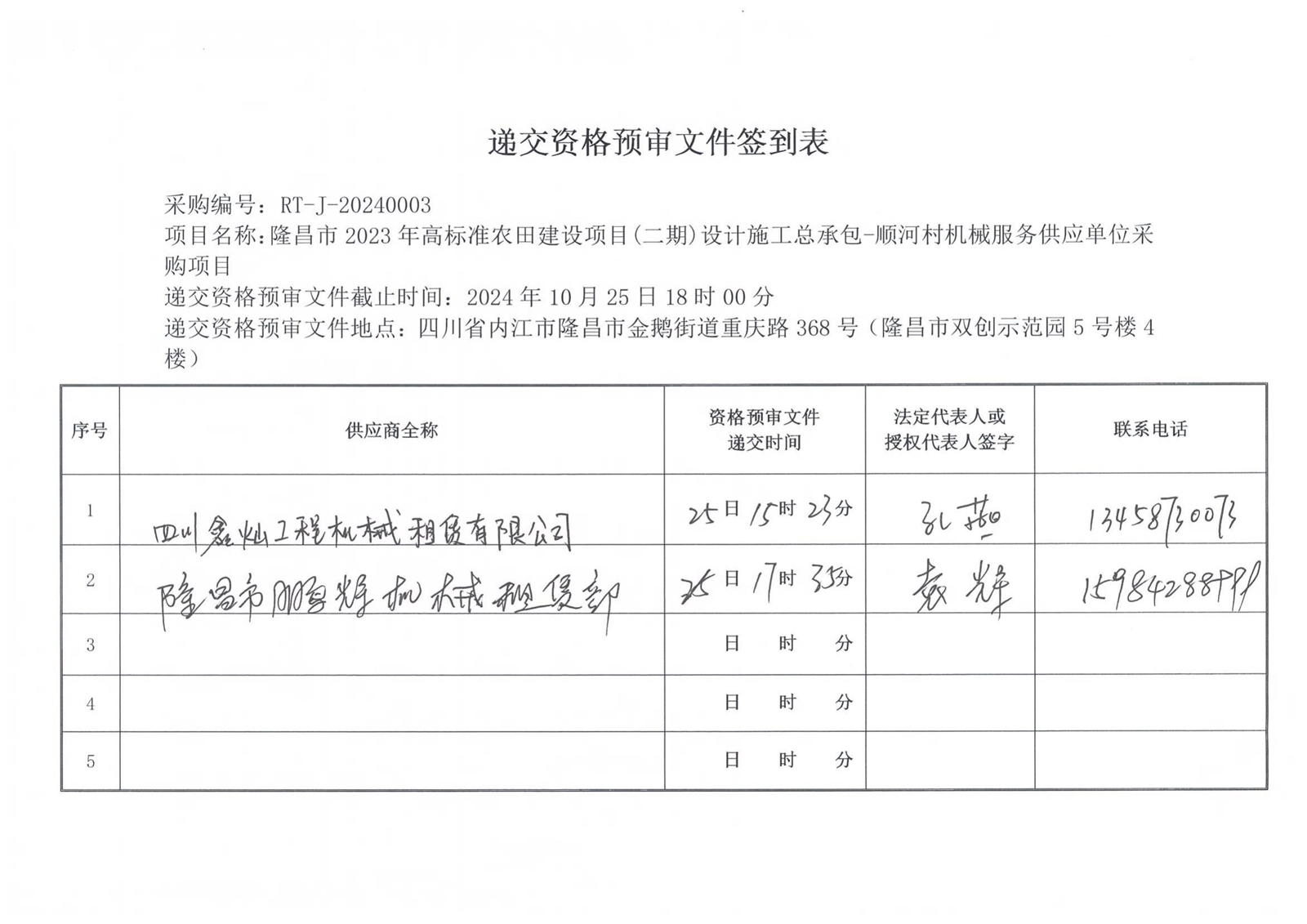 隆昌市2023年高標準農田建設項目(二期)設計施工總承包-順河村機械服務供應單位采購項目流標公告