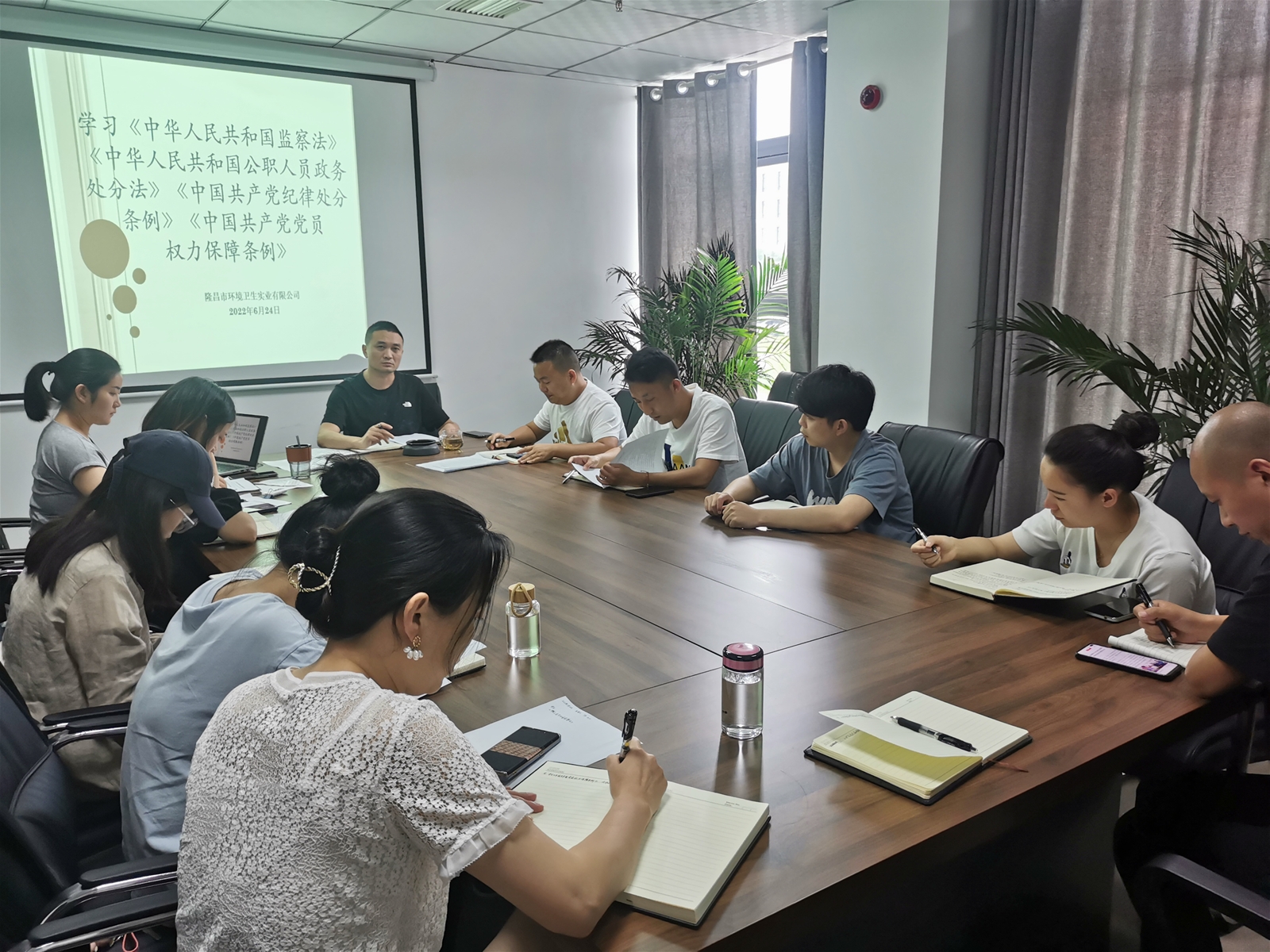 2022年6月24日下午,隆昌市環境衛生實業有限公司召開了黨風廉政建設專題會議。本次會議分為兩個階段,即:學習貫徹四川省第十二次黨代會精神和學習中華人民共和國相關法律法規。