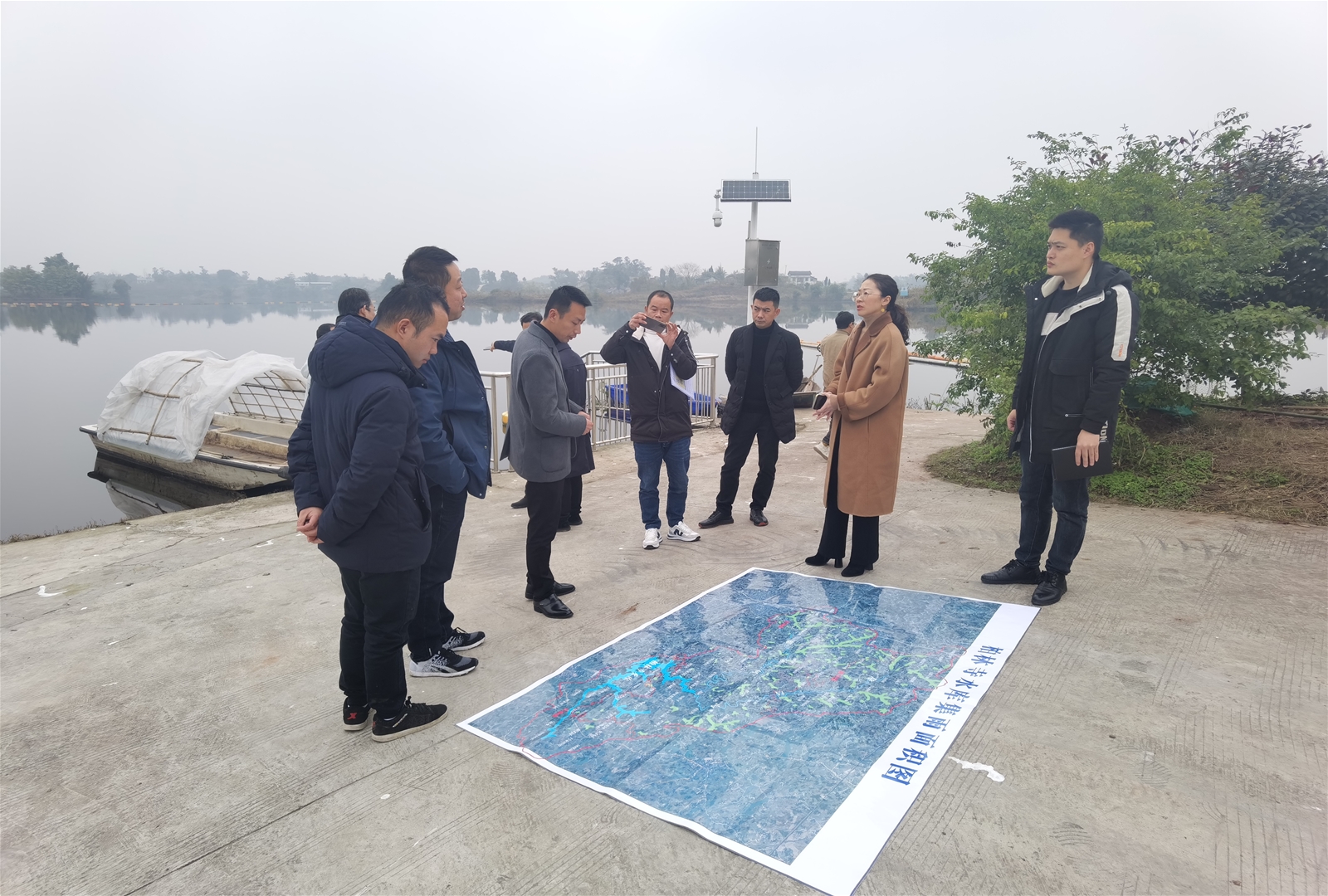 2022年1月6日,我公司聯合省農科院水產所專家、市農業農村局、水利局、普潤鎮政府相關領導先后前往柏林寺水庫及普潤鎮進行實地考察,考察現場各位專家對水庫容量、面積、水深及水質等進行了詳細記錄,同時,通過圖紙,直觀的了解到柏林寺水庫及上游魚塘的具體地理位置和提灌管網分布情況。現場各位專家就了解到的信息,圍繞“治理方式”、“成效周期”等進行了討論。