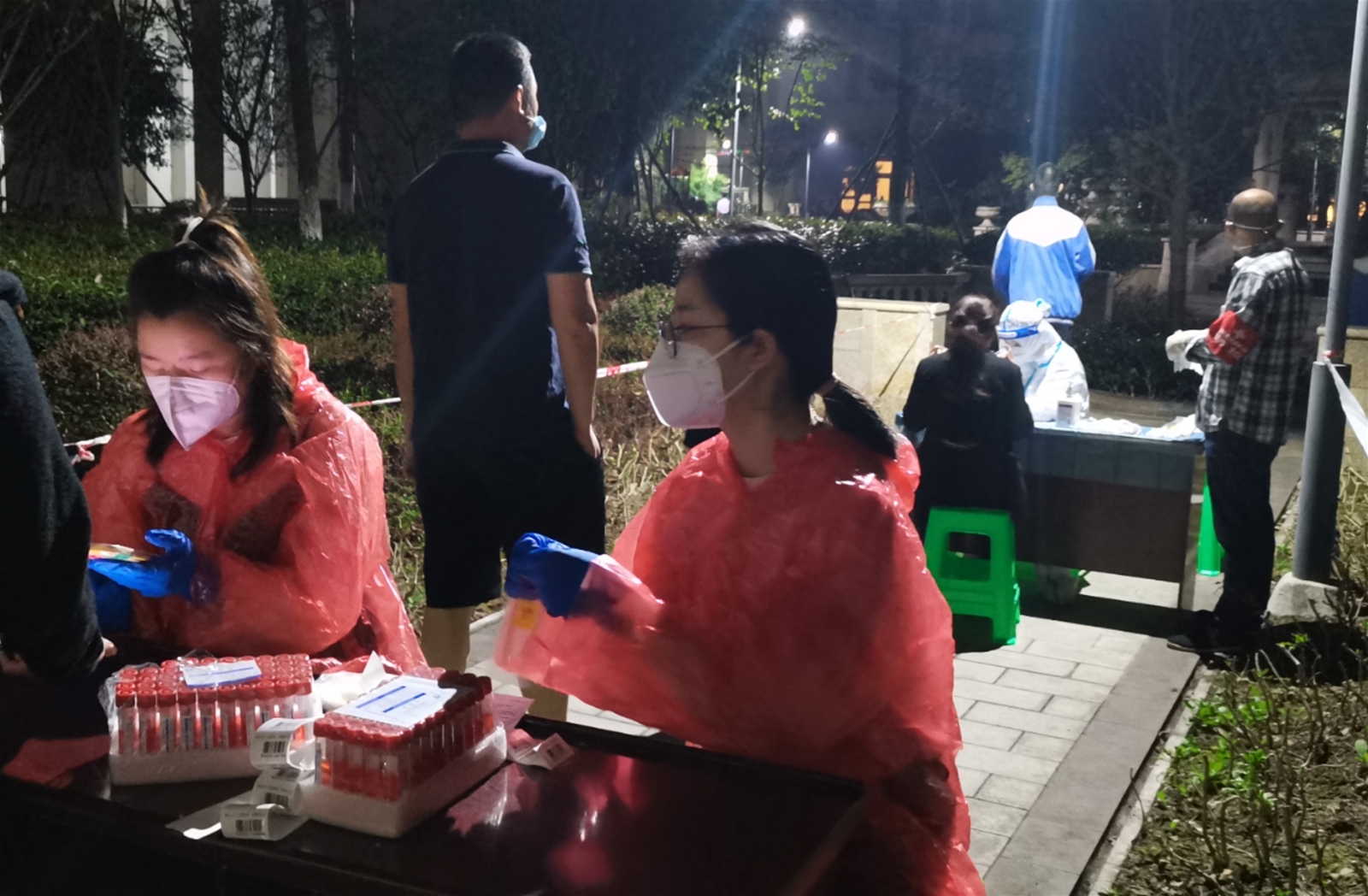 志愿者們協(xié)助綜執(zhí)局拉警戒線、積極組織小區(qū)志愿者開展工作、協(xié)助核酸檢測(cè)人員核酸信息錄入中。