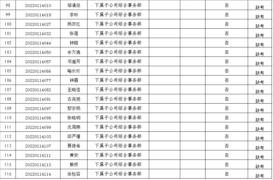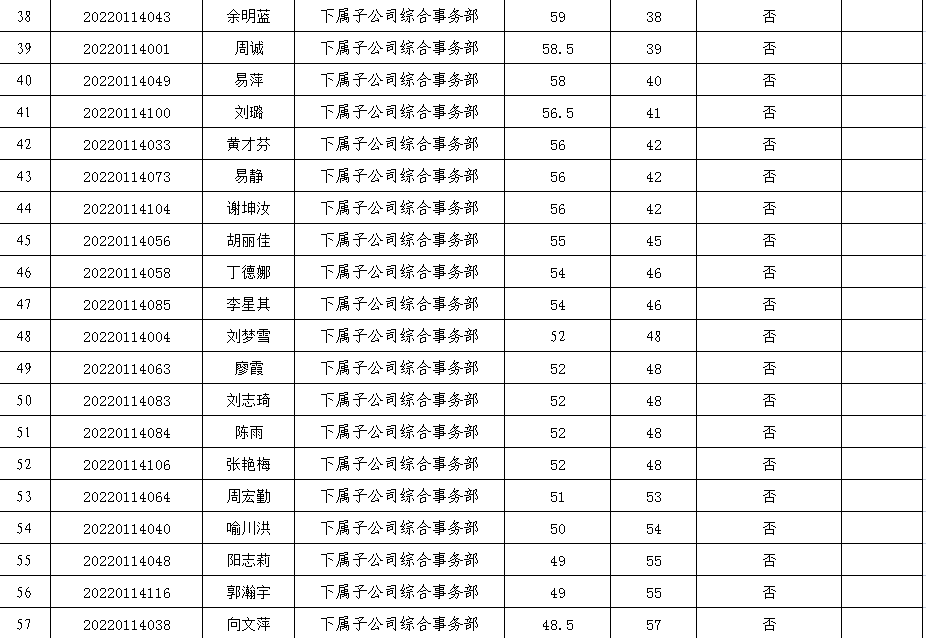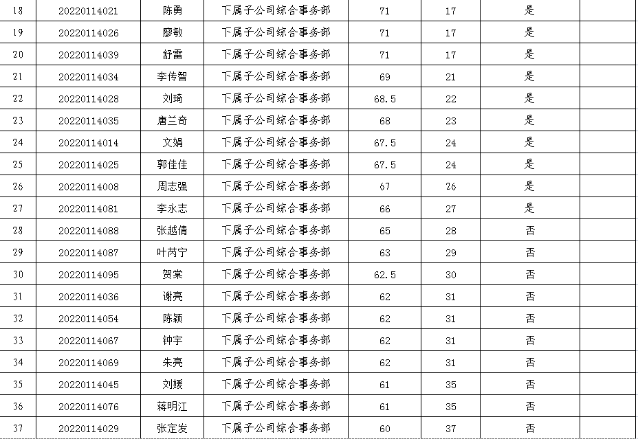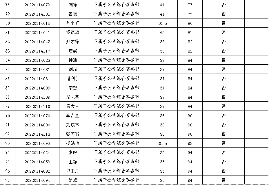 附件:2022年第一次公開招聘人員筆試成績表