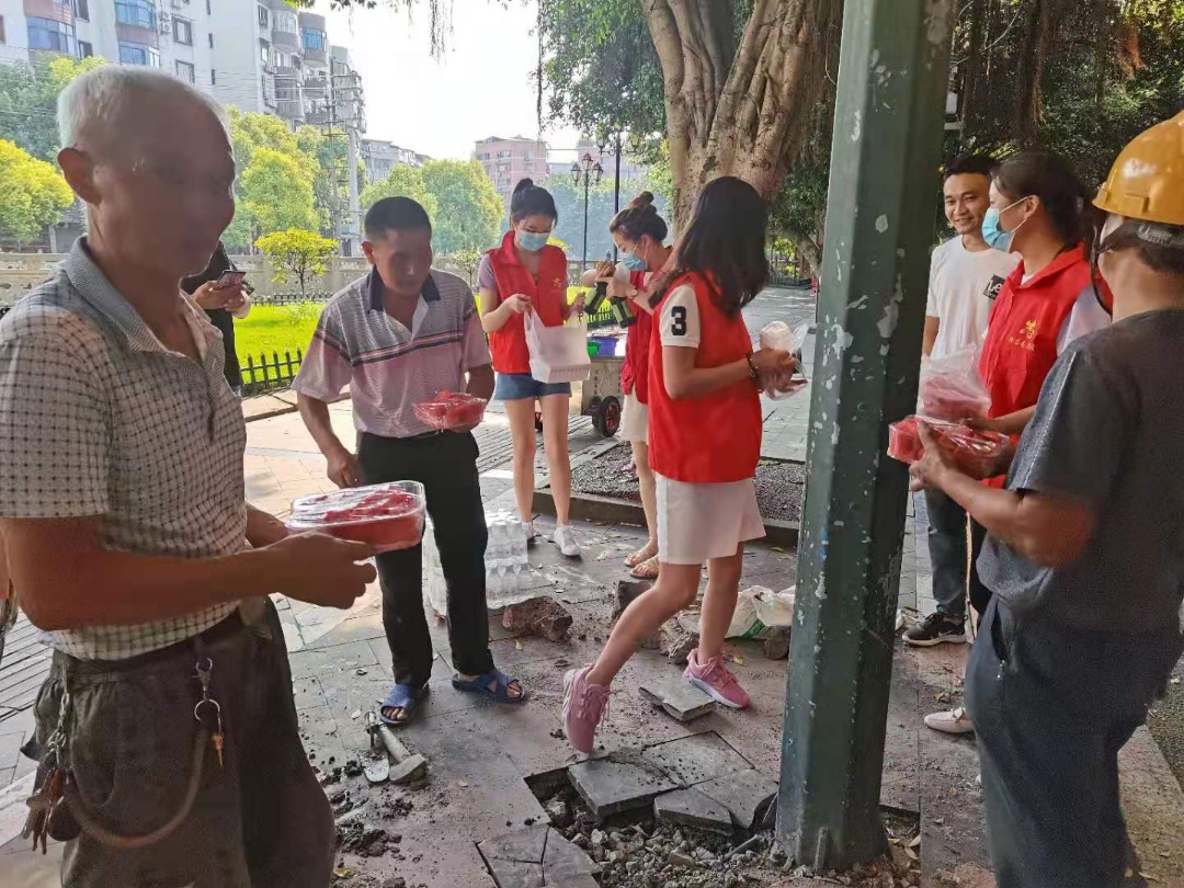 為保障高溫天氣堅守在一線崗位工人的身體健康,三古公司副總李杰紅帶領志愿者小分隊組織了一場“夏日送清涼”活動,將礦泉水、西瓜及解暑藥品等送至環境實業公司施工現場的每一位一線工人手里,以實際行動踐行“我為群眾辦實事”的初衷。一線工人對送來的慰問品表達了感謝,并表示將堅守崗位,為隆昌環境貢獻自己的力量。