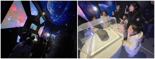 伴隨著清晨的朝霞映在天運樓塔樓,2月3日上午9點,博覽館迎來了第一批客人,是父母和小朋友開啟了博覽館的探“隕”之旅。跟隨他們的步伐,也迎來了絡(luò)繹不絕的游客。他們沉浸并駐足觀看的景觀都十分震撼,開館首日游客參觀人數(shù)約1000人。