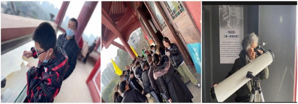 天文觀測區(qū)是為專業(yè)愛好者開辟的互動區(qū)域。恰逢當(dāng)天隆昌氣候較好,博覽館同時開放了“景觀眺望區(qū)”。這成了當(dāng)日非常熱門的景觀觀望駐足區(qū),登塔樓的老人和孩子都興致勃勃的憑欄遠(yuǎn)眺,可愛的孩子們也會向工作人員描述他遠(yuǎn)眺的景象。登高,望遠(yuǎn),契合了農(nóng)歷新年的好兆頭。